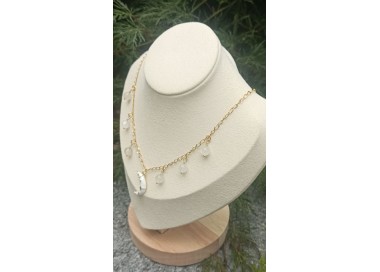 Je vous propose un collier maille fine en acier inoxydable dorée à l'or 24k. Les perles sont en pierres naturelles de Rhodonite (8mm) et Howlite...